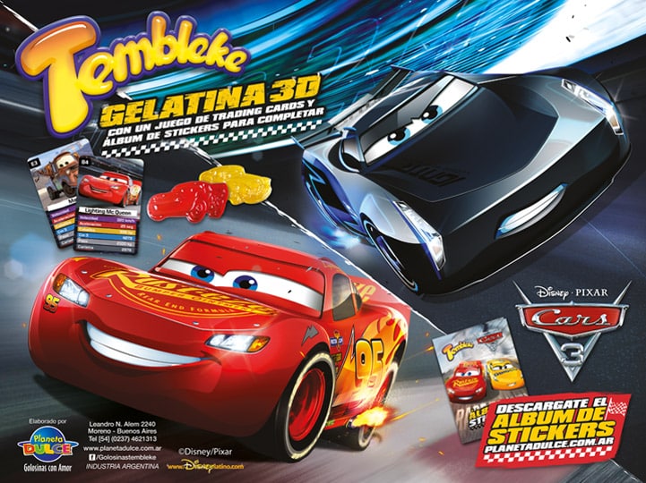 In this particular occasion, we worked Cars 3 movie image in the design of a new product: packaging, flowpack, letters, advertising posters and several other pieces.